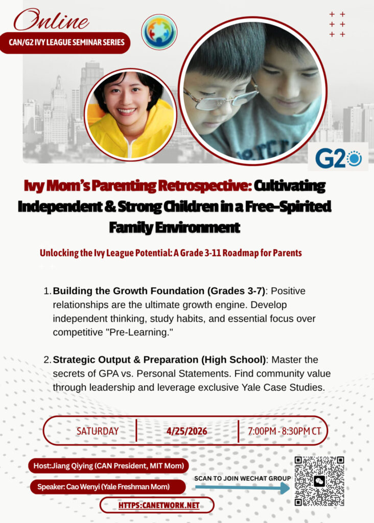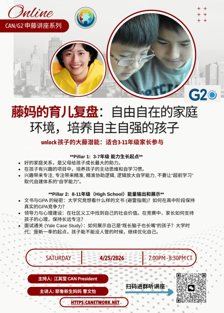CAN/G2 升藤讲座系列 – 藤妈的育儿复盘:自由自在的家庭环境,培养自主自强的孩子